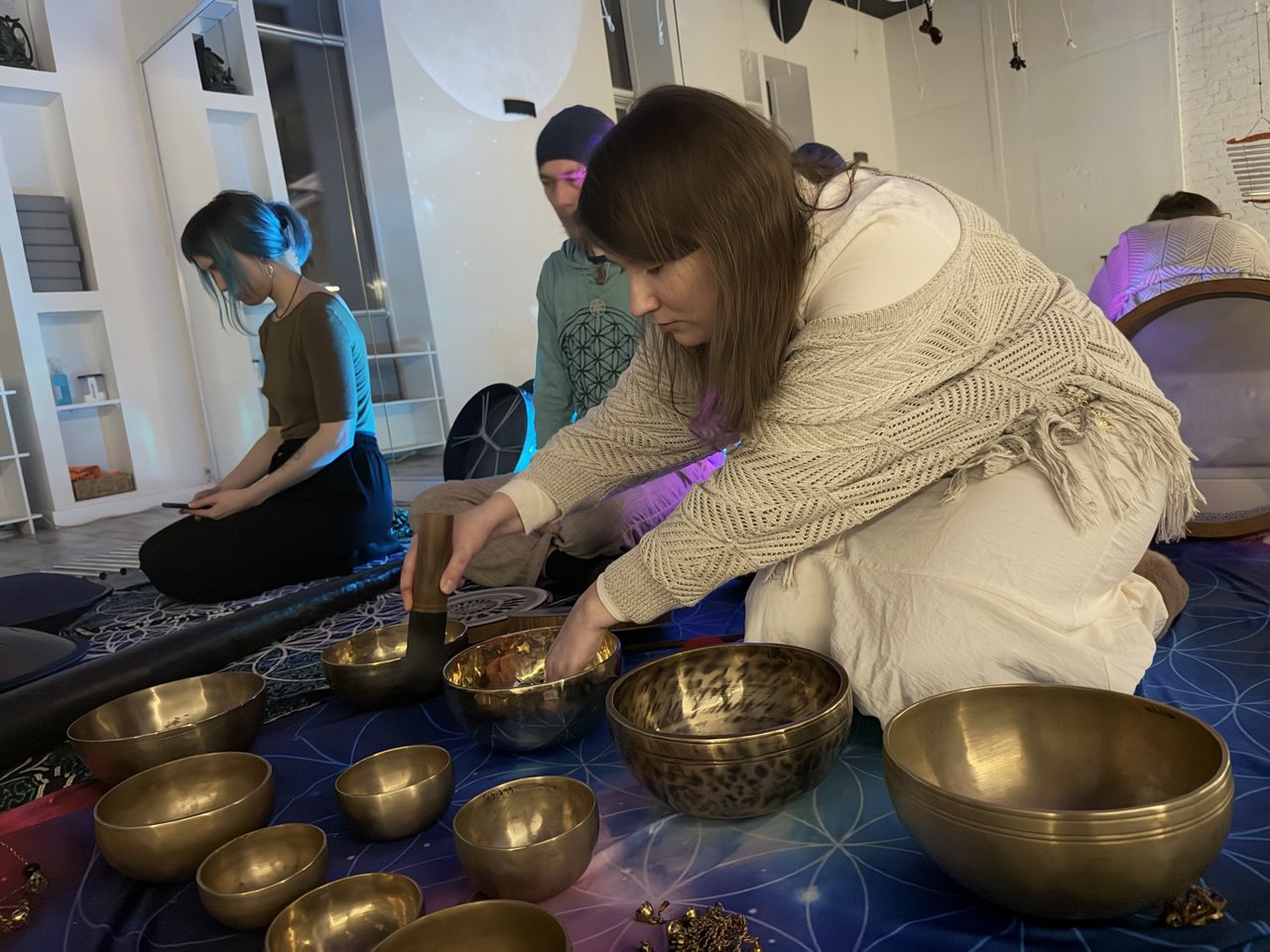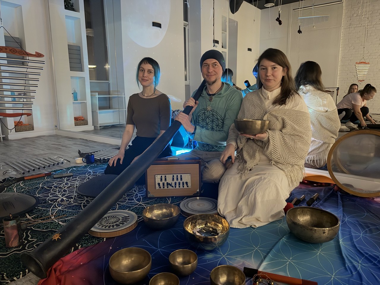 ✨ Гармоничное звучание разнообразных инструментов плавно сменяет друг друга в виртуозном исполнении мастеров саундхилинга.