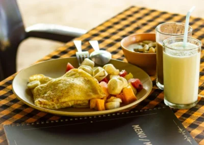 Двухразовое вегетарианское питание в формате «шведский стол» (завтрак и ужин) — $15.
